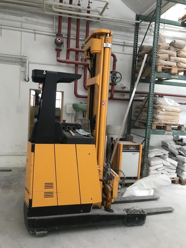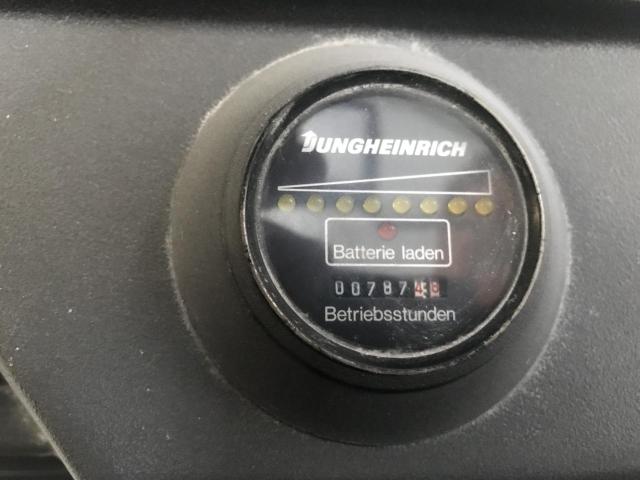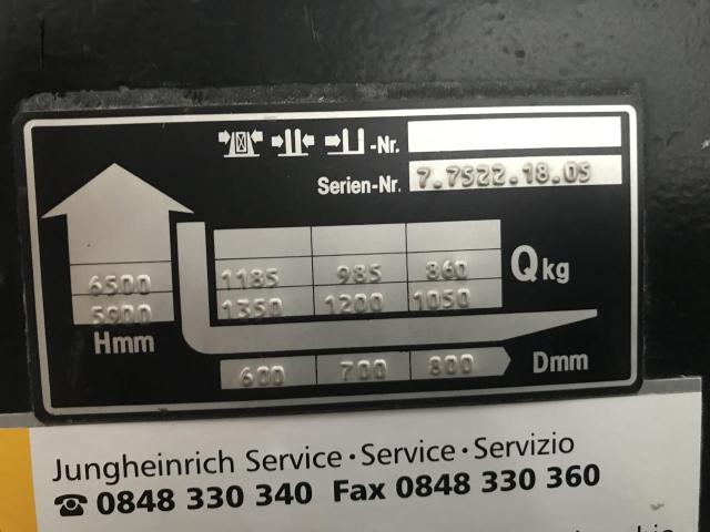 Typ Jungheinrich ETM A13.5; idealer Stapler für enge Zwischenräume und hohe Höhen. Der Stapler ist einsatzbereit. Einzig sollte das fordere linke Rad demnächst ersetzt werden (Fr. 617.–). Das ursprüngliche Kunststoffrad löst sich durch die Jahre regelrecht auf. Der Stapler ist die meisten Zeit ungebraucht gestanden. Üblicherweise leistet ein Stapler dieser Art ca. 12’000 Betriebsstunden. Somit sind gerade mal 6.5% der zu erwartenden Leistung gebraucht.